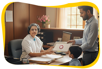 Collect the Admission form and submit it with relevant documents like the Birth Certificate, photograph, Aadhaar Card and school leaving certificate for grown up students, passport photograph of student and postcard size photo of student along with parents.